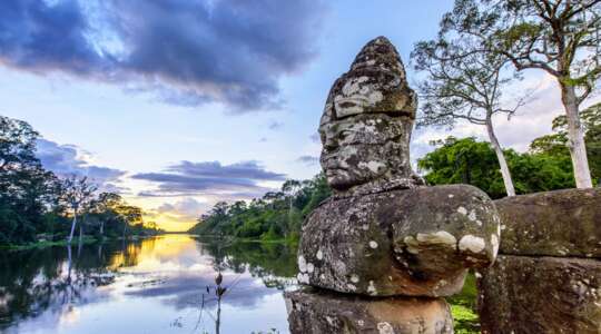 Top off a day exploring the largest temple complex in the world with a stunning sunset cruise, complete with Champagne and canapés. We’ll take you to all the highlights of the Angkor Archaeological Park, including the iconic Bayon Temple with its 216 smiling faces, the temple of Phimeanakas, the Royal Enclosure, Elephant Terrace and the Terrace of Leper King. Tuck into a much-needed lunch to refuel before the main attraction: Angkor Wat, followed by a calm sunset cruise across the Tonlé Sap lake. This is the beating heart of Cambodia and you can watch local life unfold with a glass of Champagne in hand as you pass fishermen, working boats and floating villages. It’s the perfect end to a day of discovery.