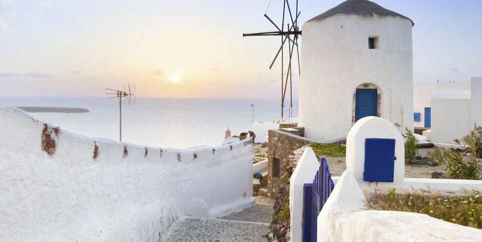Spend an afternoon exploring must-see locations across Santorini. A luxury coach will collect you from your hotel and drive you to Profitis Ilias, the highest point on the island. Take in a sweeping panorama of the island of Santorini and the deep blue hue of the Aegean Sea while learning about the island´s fascinating volcanic history. Wander around the courtyard of the 18th-century monastery that sits on top of the mountain, then visit the Saint Nektarios chapel and enjoy the tranquillity of your surroundings. Continue to the village of Pyrgos, a lesser visited but particularly lovely part of Santorini. Wander through its winding alleys and immerse yourself in its traditional atmosphere, where there are quintessential houses, blue-domed churches, and quaint shops. Take a walk to its imposing castle for beautiful vistas of the surrounding area. The next stop is Emporio, where you will join a guided walk and visit the small Venetian fortress, exploring the medieval village's doorways, windows, alleys, and arches. Continue to Perissa Beach, also known as Black Beach. There’s free time to swim in the sea or order lunch at a beachfront Greek taverna. Take the opportunity to taste local Santorinian wine and learn about the winemaking process in a private wine-tasting session comprising three wines made from local grape varieties. In the early evening, arrive at the cliff-top village of Oia with its famous, blue-domed churches. Take a guided walk from Saint George's Church, learn about Oia´s glorious maritime past, and admire elegant captains' mansions and cave-like houses along the way. Once you reach the bustling castle area, enjoy some free time to take photos, shop, or relax over a drink. Finally, watch an incredible sunset before boarding the coach for a relaxing evening journey back to your hotel.