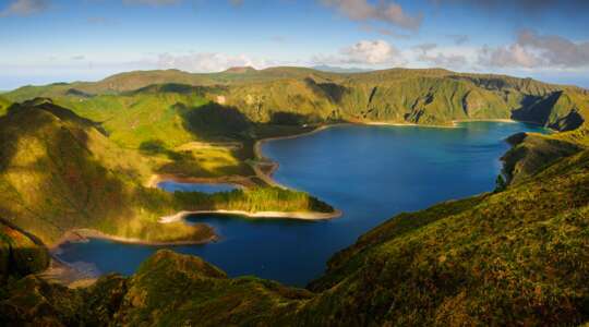 Sao Miguel’s natural landscapes are the focus on this half-day hike. You’ll travel westwards to the jaw-dropping Sete Cidades, a dramatic flooded caldera surrounded by forest-cloaked cliffs and surrounded by miles of trails. Begin the adventure at Vista do Rei (the King’s Viewpoint) for an overview and short intro about the landscape and its formation. Then it’ll be time to set off on the three-and-a-half-mile circular route which begins at the bridge where the two lakes meet and finishes in the heart of the picturesque lakeside village.