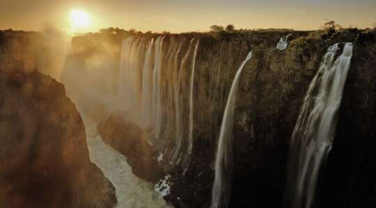 Take in the majesty of Victoria Falls on a two-hour guided visit that will bring you face to face with the world’s largest waterfall. This extraordinary natural wonder was created over millions of years as the constant pounding of the mighty Zambezi River eroded what began as a narrow fissure in the basalt plain into what you see today, so its waters now plunge dramatically into a chasm around 75m wide and 108m deep.