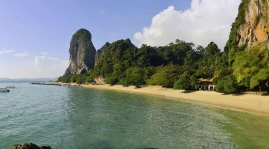 Delve into the nature, culture and adventurous spirit of Krabi. Kick-start the day at one of Thailand’s most famous monasteries, the sacred Wat Tham Suea (Tiger Cave Temple). Here, you can meet the monks who live and worship in this maze of emerald caves, poised gracefully on a jungle-clad hilltop. Scale the 1260 steps to the top of the temple and you’ll be rewarded with jaw-dropping views over Thailand, or stay put and watch families of macaque monkeys play among the temple grounds. At Khao Pra-Bang Kramv rainforest, scan the skies for black hornbills and take a dip in the clear-as-glass Emerald Pool and Blue Lagoon. Stop for lunch at a local Thai restaurant, before an afternoon at the Hot Springs where a private spa zone has been reserved for you. Away from the crowds, bathe in the warm mineral-rich waters of these volcanic springs and emerge rejuvenated.