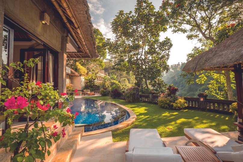 Green-and-blue views and a treetop infinity pool. Sankara Suites and Villas is ravishingly rural yet only 10 minutes from artsy Ubud.