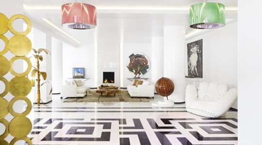 An all-white aesthetic acts as a canvas for the modern artwork and graffiti by local artists.
